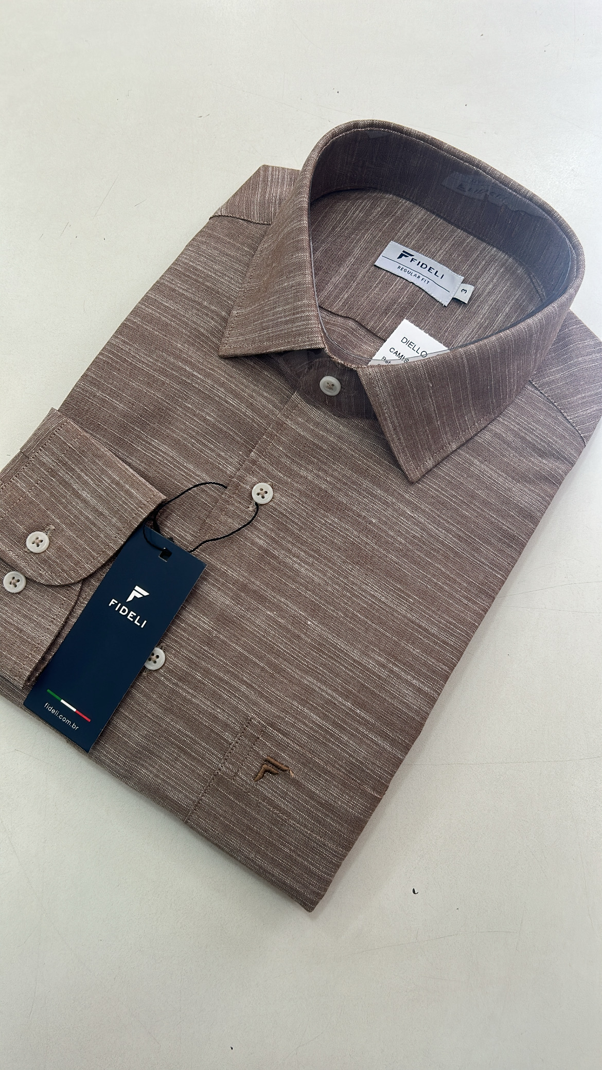camisa masculina de algodão, camisa marrom masculina, camisa de manga longa Fideli, camisa social de algodão, camisa casual masculina, camisa 100% algodão.